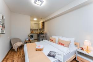 The kitchen is fitted with a stovetop, a refrigerator and kitchenware. The air-conditioned apartment offers a flat-screen TV, a washing machine, a tea and coffee maker, parquet floors as well as a quiet street view. The unit offers 1 bed.