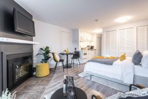 This studio's special feature is the fireplace. The fully equipped kitchenette features a stovetop, a refrigerator, kitchenware and an oven. This air-conditioned studio includes a flat-screen TV with streaming services, a private bathroom as well as a patio. The unit offers 1 bed.
