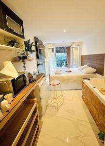 Pokoje: 1This apartment features a hot tub and a spa bath. A kitchenette fitted with a refrigerator, a microwave and a tea and coffee maker is available for cooking and storing food. This apartment has a minibar, flat-screen TV, city views, as well as chocolate for guests. V této ubytovací jednotce se nachází 1 postel.