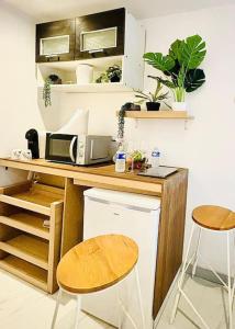 Apartmán v ubytování zahrnuje 1 ložnici a kuchyňský kout s lednicí, mikrovlnnou troubou a kávovarem. Vybavení Studio Love Jacuzzi zahrnuje TV s plochou obrazovkou.