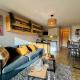 Среди удобств этих апартаментов - кухня с холодильником, микроволновой печью и кофемашиной. Среди удобств - телевизор.