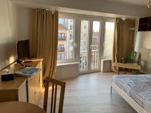 The apartment features a carpeted floor, heating, as well as a private bathroom featuring a shower. In the fully equipped kitchen, guests will find a stovetop, a refrigerator, kitchenware and an oven. The apartment provides a tea and coffee maker, a dining area, a wardrobe, parquet floors, as well as a flat-screen TV with cable channels. The unit offers 1 bed.