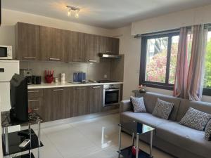 Apartmán má TV. Kuchyň v Studio moderne à 50m de la plage, climatisé, proche commerces et gare, parking disponible - FR-1-466A-50 je vybavena lednicí, myčkou a troubou, v koupelně je sprcha a fén.