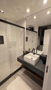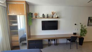 Klimatizovaný apartmán Studio moderno, aconchegante e bem localizado zahrnuje 1 ložnici, obývací pokoj, plně vybavenou kuchyň s lednicí a mikrovlnnou troubou a 1 koupelnu. Koupelna v Studio moderno, aconchegante e bem localizado zahrnuje sprchu a toaletní potřeby zdarma. V ubytování ubytování jsou pro hosty připraveny ručníky a ložní prádlo.