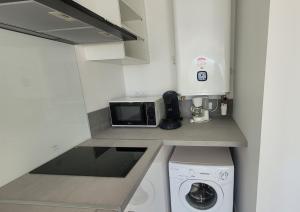 Diese Ferienwohnung ist eingerichtet mit 1 Schlafzimmer, einer Küche mit einem Kühlschrank und einer Mikrowelle, 1 Badezimmer mit einer Dusche, einem Haartrockner und einer Waschmaschine. In dieser Ferienwohnung werden Handtücher und Bettwäsche angeboten.