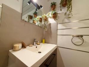 Кухня в Studio 2 personnes Proche Centre-Ville оснащена холодильником, духовкой, микроволновой печью, а также кофемашиной и чайником.