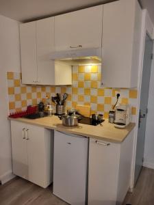 Apartament Studio/2 pièces, terrasse mieści sypialnię, salon, łazienkę z prysznicem i suszarką oraz kuchnię z lodówką i ekspresem. Ręczniki i pościel są dostępne w apartamencie Studio/2 pièces, terrasse.