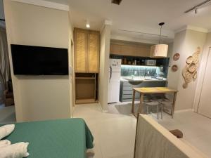 L'unità climatizzata di la struttura include 1 camera da letto, soggiorno, bagno con doccia e phon, e cucina attrezzata con frigo. Studio Reformado em Ondina mette a vostra disposizione una TV a schermo piatto.