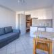 Apartmán má TV. Apartmán má také kuchyň s kompletním vybavením včetně lednice a mikrovlnné trouby, jídelní část a koupelnu.