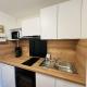 Diese Ferienwohnung verfügt über eine Küchenzeile mit einem Kühlschrank, einem Ofen sowie einer Kaffeemaschine. Es gibt einen TV.