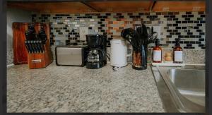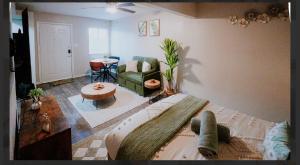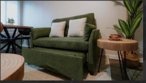 Studio Retreat Downtown View cuenta con aire acondicionado, 1 dormitorio, sala de estar, zona de comedor, TV de pantalla plana por cable y cocina con nevera. El apartamento el alojamiento dispone de toallas y ropa de cama.
