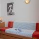 W apartamencie znajduje się salon oraz aneks kuchenny z pełnym wyposażeniem, w tym lodówką i mikrofalówką.