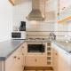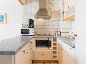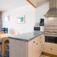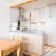 Apartmán má TV. Apartmán má také kuchyň s kompletním vybavením včetně lednice a myčky nádobí, jídelní část a koupelnu.