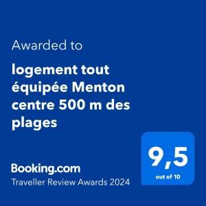 Situated in Menton, 800 metres from Borrigo Beach and 11 km from Grimaldi Forum Monaco, Studio tout équipé centre ville Menton offers a terrace and air conditioning. Studio tout équipé centre ville Menton offers access to a balcony and free private parking. The property is non-smoking and is set 14 km from Chapiteau of Monaco.