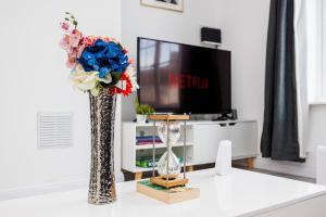 This spacious apartment features 1 living room, 2 separate bedrooms and 1 bathroom with a shower and free toiletries. The fully equipped kitchen has a refrigerator, a dishwasher, kitchenware and an oven. The apartment features a washing machine, a private entrance, a tea and coffee maker, a flat-screen TV, as well as garden views. V této ubytovací jednotce se nachází 5 postelí.
