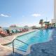 Guests will have a special experience as this apartment provides a pool with a view and a hot tub. Boasting a private entrance, this air-conditioned apartment includes 1 living room, 1 separate bedroom and 2 bathrooms with a bath and a shower. Guests can make meals in the kitchen that has a stovetop, a refrigerator, a dishwasher and kitchenware. The spacious apartment offers a flat-screen TV with satellite channels, a washing machine, a tea and coffee maker, a seating area as well as sea views. The unit is furnished with 4 beds.