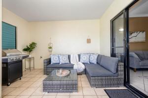 The spacious apartment features 2 bedrooms, 2 bathrooms, bed linen, towels, a flat-screen TV, a dining area, a fully equipped kitchen, and a balcony with pool views. Guests at the property are welcome to enjoy wine, champagne, chocolates, or cookies. Stunning Waterfront Living on the Breakwater includes an outdoor dining area.
