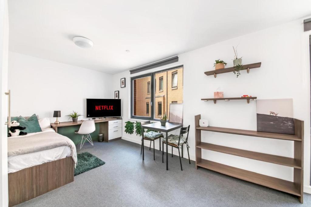 L'unità di Stylish 1Bed, City Centre - 5 min walk to Station presenta 1 camera da letto, salotto, TV a schermo piatto, bagno con doccia e cucina completa di forno e frigo. Asciugamani e lenzuola sono inclusi nei servizi di Stylish 1Bed, City Centre - 5 min walk to Station.
