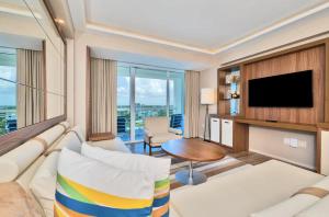 Guests will have a special experience as this apartment features a pool with a view and a hot tub. This apartment is comprised of 1 living room, 1 separate bedroom and 1 bathroom with a bath and free toiletries. In the well-equipped kitchenette, guests will find a stovetop, a refrigerator, a dishwasher and a microwave. The air-conditioned apartment offers a flat-screen TV, a coffee machine, a seating area, a wardrobe as well as city views. The unit offers 2 beds.