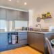 The fully equipped kitchen has a stovetop, a refrigerator, kitchenware and an oven. The apartment features carpeted floors, a seating area with a flat-screen TV, a washing machine, a tea and coffee maker as well as city views. The unit has 2 beds.