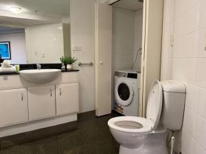 Questo appartamento ha 1 camera da letto, un angolo cottura con frigorifero e lavastoviglie e 1 bagno con vasca da bagno, asciugacapelli e lavatrice. La dotazione di Stylish City Stay in Parramatta Pool , Parking include una TV.