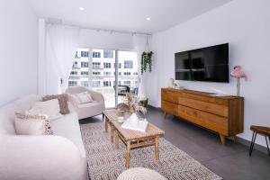 This apartment's standout features are the pool with a view and hot tub. This apartment includes 1 living room, 2 separate bedrooms and 2 bathrooms with a walk-in shower and free toiletries. Guests can make meals in the kitchen that is fitted with a stovetop, a refrigerator, a dishwasher and kitchenware. The air-conditioned apartment offers a flat-screen TV with streaming services, a washing machine, soundproof walls, a tea and coffee maker as well as sea views. The unit has 3 beds.