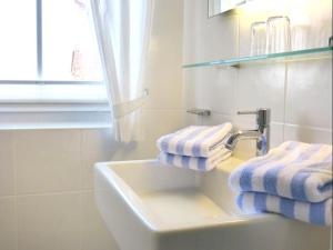 Apartmán má 2 ložnice, 1 koupelnu, ložní prádlo, ručníky, TV, kuchyň s kompletním vybavením a balkon s výhledem na moře. V koupelně ubytování *Südspitze 10 mit Meerblick* nechybí sprcha ani fén.