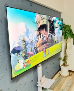 Klimatizovaný apartmán v 1 日1組限定 名古屋駅徒歩5分 沙羅居Suite202 最大4名様 65インチ大型TV má 1 ložnici, kuchyň a TV s plochou obrazovkou.
