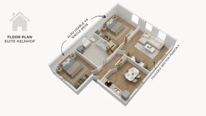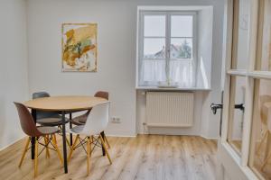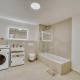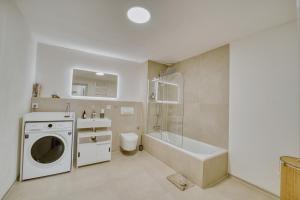 Diese Ferienwohnung im Suite Kelnhof Patio - Cozy Riverside Apartment umfasst 1 Schlafzimmer, einen Flachbild-TV und eine voll ausgestattete Küche mit Kühlschrank, Spülmaschine, Waschmaschine, Ofen und Mikrowelle.