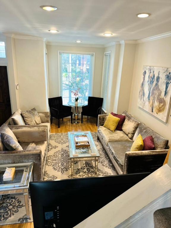 Klimatizovaný prázdninový dům Suites at V Street zahrnuje 3 ložnice, obývací pokoj, plně vybavenou kuchyň s lednicí a myčkou a 2 koupelny. Koupelna v ubytování zahrnuje sprchu a toaletní potřeby zdarma. V ubytování Suites at V Street jsou pro hosty připraveny ručníky a ložní prádlo.
