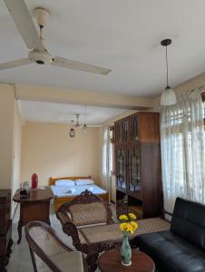 The kitchen features a refrigerator, kitchenware and an electric kettle. The spacious air-conditioned apartment features a flat-screen TV, a seating area, a dining area, a wardrobe as well as garden views. V této ubytovací jednotce se nachází 1 postel.