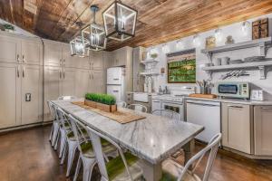 V tomto klimatizovaném domě v Summer Wind cabin jsou 2 ložnice, 2 koupelny a kuchyň s lednicí a myčkou. Koupelna je vybavená sprchou.