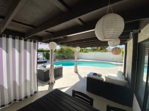 Rooms: 1This luxurious holiday home features a pool with a view, a hot tub and a fireplace. Guests will find a stovetop, a refrigerator, a dishwasher and an oven in the well-fitted kitchen. The holiday home also provides guests with a barbecue. The spacious air-conditioned holiday home provides a flat-screen TV with streaming services, a washing machine, a private entrance, a tea and coffee maker as well as pool views. The unit provides 4 beds.