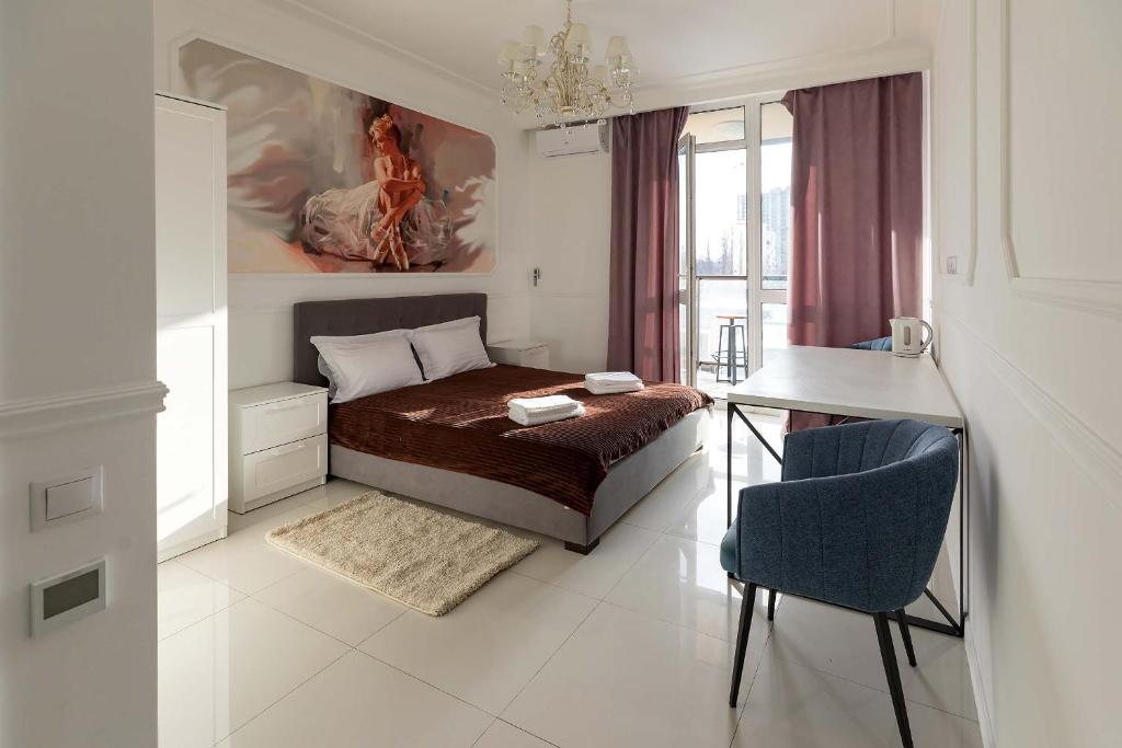 The spacious double room features air conditioning, a washing machine, a balcony with city views as well as a private bathroom boasting a shower. The unit has 1 bed.