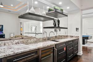 Questa casa vacanze presenta 7 camere da letto, una TV con canali satellitari, una cucina con frigorifero e lavastoviglie, una lavatrice e 7 bagni con doccia. La dotazione di questa casa vacanze presso Sun-Filled 7 Bdrm Haven with Sports Themed Game Room at Reunion include lenzuola e asciugamani.