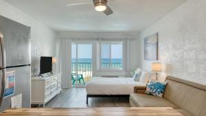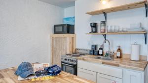 The well-equipped kitchen features a stovetop, a refrigerator, kitchenware and an oven. The holiday home offers air conditioning, a tea and coffee maker, a balcony with sea views as well as a private bathroom featuring a shower.