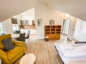 В апартаментах объект размещения имеется 1 спальня, гостиная, кухня с оборудованием и ванная комната. Полотенца и постельное белье включены в стоимость проживания в Sünnsiet.