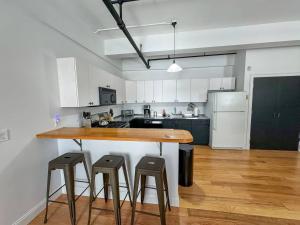Die Unterkunft Sunny & Spacious Studio Back Bay ist ausgestattet mit 1 Schlafzimmer, einer Küche mit einem Kühlschrank und einem Geschirrspüler, einer Waschmaschine und 1 Badezimmer mit kostenlosen Pflegeprodukten und einem Haartrockner.