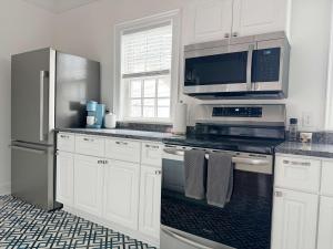 El apartamento de 1 dormitorio cuenta con sala de estar con TV con canales por cable, cocina totalmente equipada con nevera y lavavajillas, y 1 baño con artículos de aseo gratuitos. El apartamento Sunny & Playful Carriage House in Downtown Savannah Stay Here and Walk Everywhere dispone de toallas y ropa de cama.