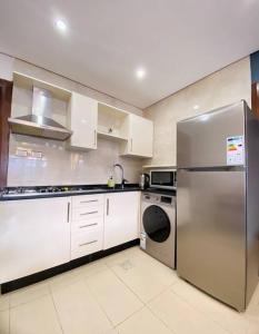 The well-fitted kitchen features a refrigerator, an oven and a microwave. The spacious apartment provides air conditioning, a washing machine, a private entrance, a tea and coffee maker, as well as a flat-screen TV. The unit offers 2 beds.