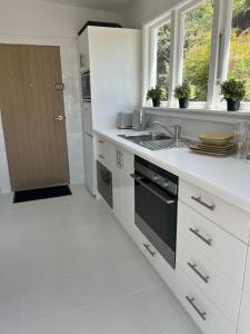 Sunny hillside central Nelson hideaway with city to sea views include 1 camera da letto, area salotto con TV a schermo piatto, bagno con doccia e cucina con frigo e lavastoviglie. Sunny hillside central Nelson hideaway with city to sea views fornisce lenzuola e asciugamani ai propri ospiti.