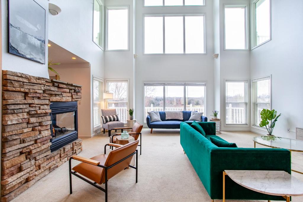 Klimatizovaný prázdninový dům Sunny Ridge - Hot Tub, Gym, Jacuzzi Tub, Game Room zahrnuje 4 ložnice, obývací pokoj, plně vybavenou kuchyň s lednicí a myčkou a 3 koupelny. Koupelna v ubytování zahrnuje sprchu a toaletní potřeby zdarma. V ubytování Sunny Ridge - Hot Tub, Gym, Jacuzzi Tub, Game Room jsou pro hosty připraveny ručníky a ložní prádlo.