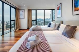 Prostorný apartmán s 1 obývacím pokojem, 3 samostatnými ložnicemi a 2 koupelnami se sprchou a bidetem. Jídlo si zde můžete připravovat v dobře vybavené kuchyni s varnou deskou, lednicí, nádobím a troubou. Apartmán nabízí klimatizaci, pračku, posezení, šatní skříň a TV s plochou obrazovkou se streamovacími službami. V této ubytovací jednotce se nacházejí 4 postele.