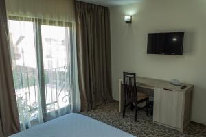 Cette chambre double dispose de la climatisation, d'une armoire, ainsi que d'une salle de bains privative avec une douche à l'italienne et un sèche-cheveux. Le logement comporte 1 lit.