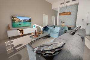 This apartment's special features are the private pool and the hot tub. Featuring a private entrance, this spacious apartment also consists of 4 bedrooms, a seating area and 2 bathrooms with a bath and a shower. Guests will find a stovetop, a refrigerator, a dishwasher and kitchenware in the well-equipped kitchen. The apartment also offers a barbecue. The air-conditioned apartment provides a flat-screen TV with streaming services, a washing machine, soundproof walls, a tea and coffee maker as well as sea views. The unit offers 9 beds.