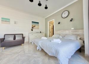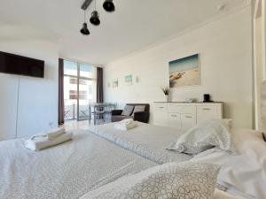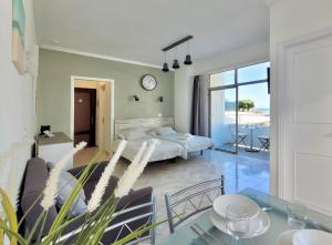 Guests can make meals in the kitchen that is equipped with a stovetop, a refrigerator, kitchenware and a microwave. The studio provides a washing machine, a tea and coffee maker, a terrace with sea views as well as a private bathroom featuring a bath. The unit offers 3 beds.