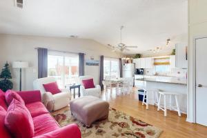 Boasting a private entrance, this air-conditioned holiday home features 3 bedrooms, 2 bathrooms and a living room. Meals can be prepared in the kitchen, which has a stovetop, a refrigerator, a dishwasher and kitchenware. This holiday home has a washing machine, a tea and coffee maker, a TV with cable channels and a patio. The unit has 5 beds.