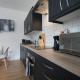 L'appartamento con 1 camera da letto a Superb One Bedroom Apartment in Dundee ha soggiorno con TV a schermo piatto e cucina.