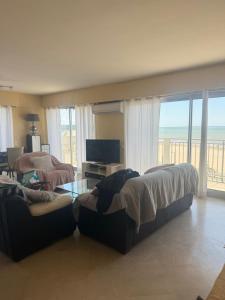 In the kitchen, guests will find a stovetop, a refrigerator, a dishwasher and kitchenware. The spacious air-conditioned apartment offers a flat-screen TV with cable channels, a washing machine, a coffee machine, a seating area as well as sea views. The unit offers 1 bed.