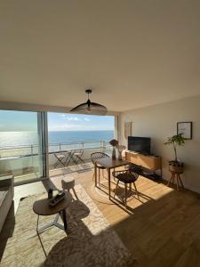 Apartmán Sur le sable, face à la mer La Petite Tour zahrnuje 1 ložnici, 1 koupelnu, ložní prádlo, ručníky, TV s plochou obrazovkou, jídelní kout a plně vybavenou kuchyň. Hosté ubytování ubytování mohou využívat terasu s výhledem na moře. Koupelna v ubytování je vybavena sprchou, fénem a toaletními potřebami zdarma.